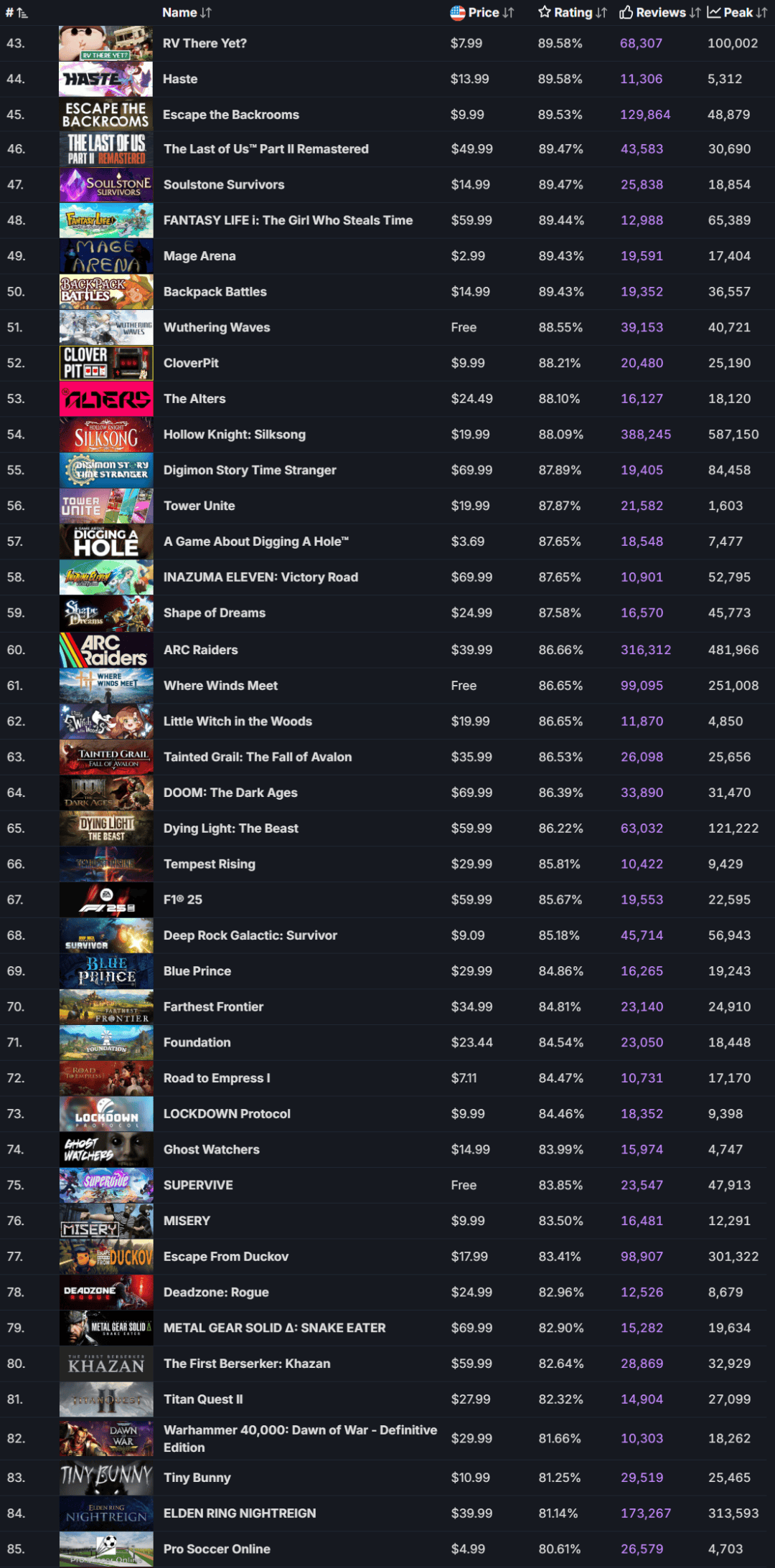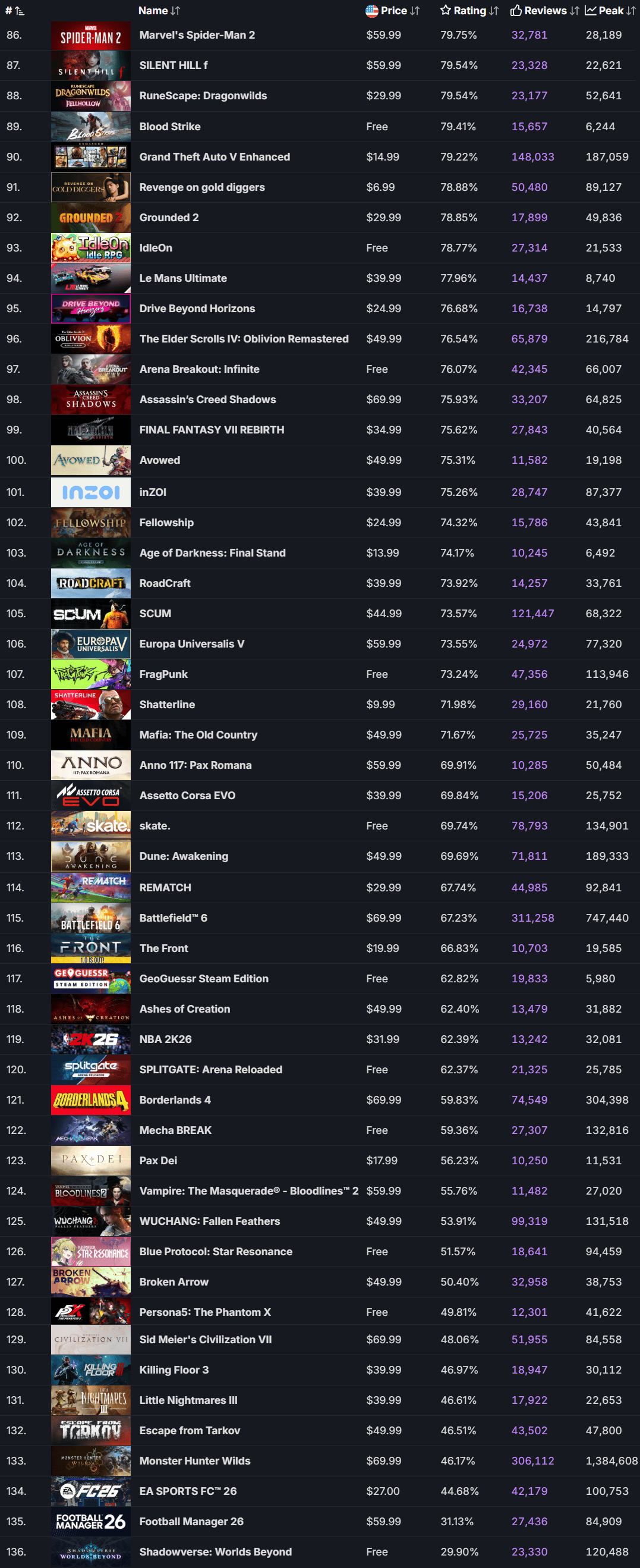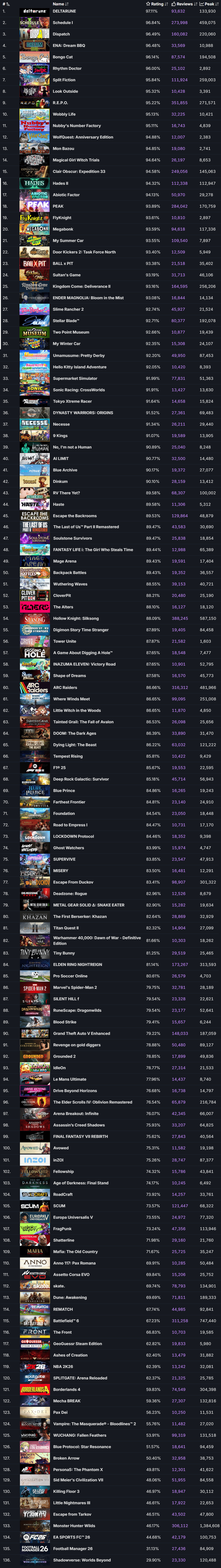 评」的要求根据「万,发售的游戏(数据源泉SteamDB咱们能筛选出136款正在2025年,式和免费游戏包罗EA转正,非游戏行使)不含DLC和,表如下注意列:
