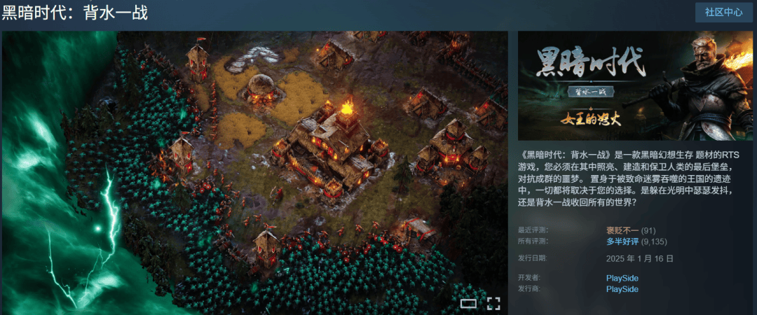 如比,Darkness: Final Stand)》售价13.99美金评论量堪堪过万的RTS游戏《暗中期间:背水一战(Age of ,预估其总销量约为48.8万套第三方平台Gamalytic,金(约4381万元)总营收约为630万美,和开拓周期不探讨本钱,可能说很不错了这份纸面数据。