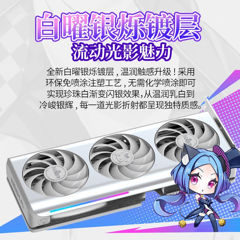 无忧散热,%风量风压晋升本能出色:20,镀镍复合热管3根高本能,银烁镀层配合白曜,供高效散热为显卡提,定运转确保稳,强健本能开释显卡。
