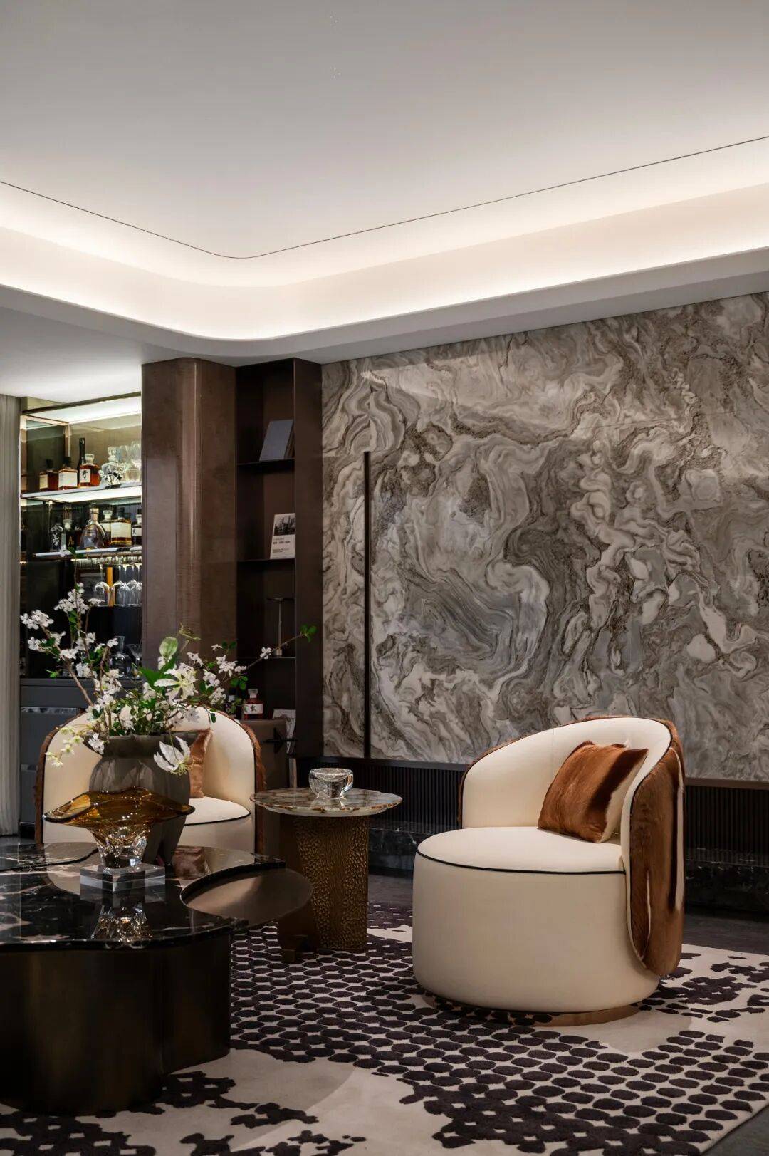 求天然本真天然原料追;……木质的温润、金属的硬朗、石材的贵气和皮料的奢侈同时又有瓦楞夹丝玻璃、镜面茶色金属等当代原料的出席,完好协调正在这里。